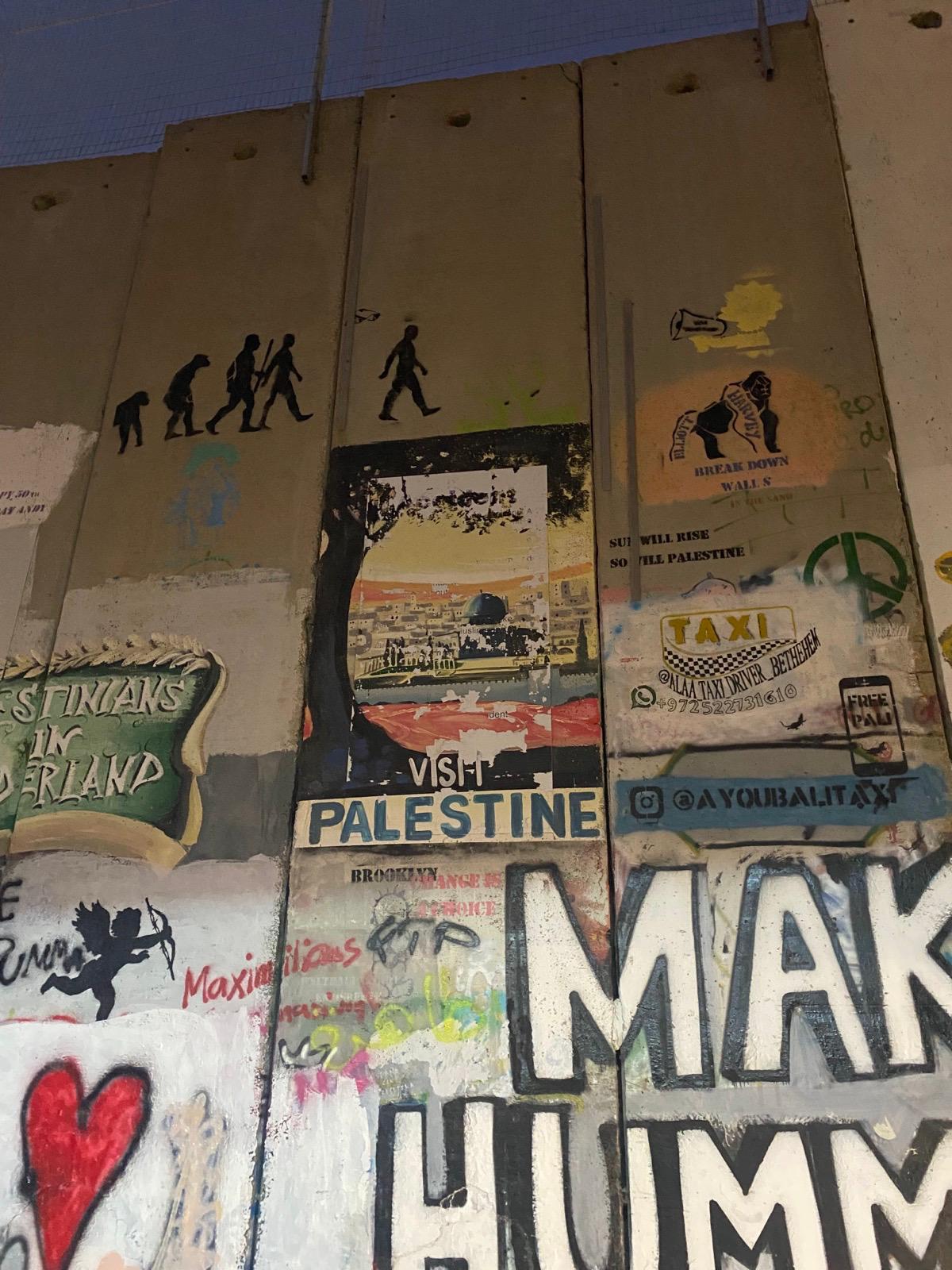 We visited Jerusalem, the Balata refugee camp in Nablus, Nabih Saleh, Ramallah, the Aida refugee camp in Bethlehem, Hebron, and were taken on a walking tour in Jaffa.